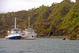 Leaving the Trobriands we headed for the Luscancay Island Group, then Tami Island finally anchoring off Ritter Island (Kulkul) a remnant volcano and source of great geological interest. We tried to climb a volcano and see megapodes on Long Island to no avail, but we compensated with a swim. Heading west we avoided Vitiaz Strait, reached Madang and moored off the Madang Club. We were joined in Madang by James’ new family for lunch at the Country Club which added a nice personal touch. Bernie Leahy joined us for Happy Hour. We left Bruce in Madang to pursue his next job as deer and buffalo hunter. Onward to the Sepik! We passed volcanic Manam Island early in the morning with its plumes of ash and smoke. It was a spectacular sight but not too threatening. There were many volcanic islands which provided a very picturesque outlook as we headed for the Sepik. The opening to the Sepik was modest by comparison to the Fly: there was some muddy outflow and quite a small entrance. We thoroughly enjoyed being back on river cruising and bird spotting mode and stopped again at various villages along the way: Angoram, original village of Michael Somare; Kambaramba which was a really fascinating village of stilt houses: despite obvious flooding everyone was out to greet us on platforms of houses, in dugouts or sailing boats. It was a real spectacle for all to share. Sadly the local school had been destroyed but found a replacement to give our usual donations to. Other Sepik villages of Tambanum, Kaminabit, Palembei and Kanganaman proffered rich opportunity for buying artefacts and sing-sings and at Palembei and Kanganaman we were invited into spirit houses, apparently a new innovation to cater for tourism. High water levels meant that we had to approach Palembei by banana boat and this was truly beautiful in the early morning light. On our return down the Sepik we also stopped at Marienberg a Catholic mission with a strong German history. Once out of the Sepik we were again in rough waters so we headed straight for Wewak where we visited Cape Wom, the site of the Japanese surrender and the end of WWII. Another fabulous adventure in a land which never ceases to amaze! 1. Miss Rankin is a 28m steel hulled multi-purpose small ship. There is accommodation for 32 people including crew. The Surveyor, also 28m, is designed as a survey, supply and research vessel and can carry 12 passengers. 2. Dr Lawes reached Port Moresby from Savage Island (now known as Niue) in November 1874.
