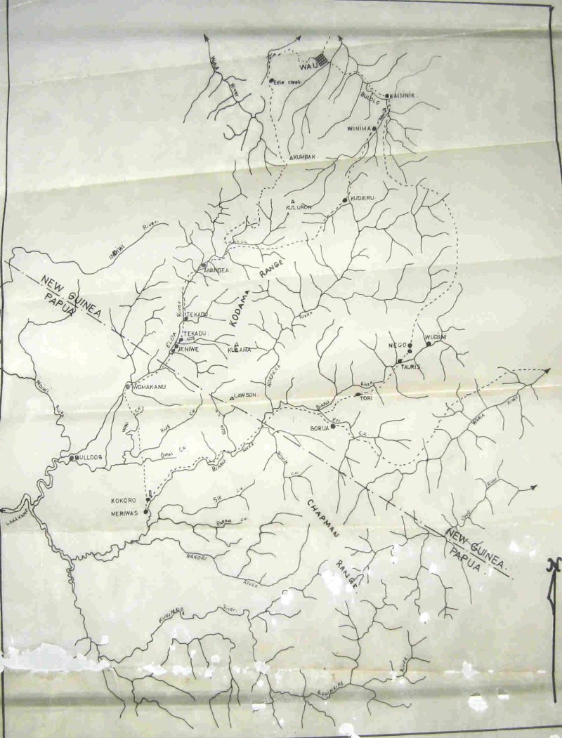 One of the few Patrols at Wau was to visit the area down near the Papuan border and over the ridges from the Waria River area (Garaina Patrol Post). Some years before, a previous patrol had marked out an airstrip site down near the Papuan border and the people there were keen to ensure the construction was progressing well. The site had not been visited for some years and I checked the old Patrol Reports to get some background on area and people.