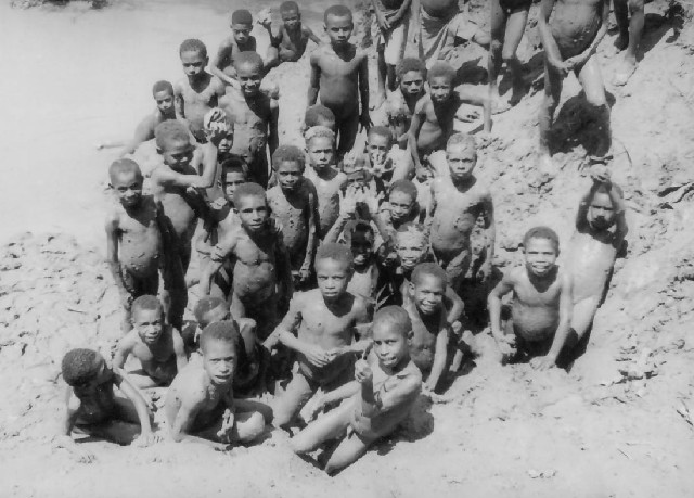 When a flood subsided, soccer balls and softball equipment were put aside and a frolic in the mud became the favoured pastime during class breaks. Even when it was drying out, the children splashed water up to freshen the natural slippery dips formed in the river bank.