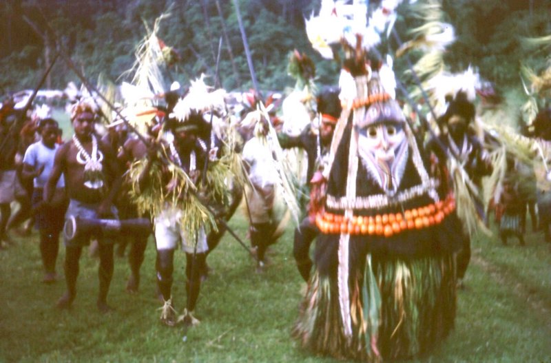 In 1964 I convinced the government to build us a new school at the far end of the airstrip away from all the distractions of the wharf which was next to the old school. The old school buildings were in bad shape needing replacement. This, together with the following three slides are pictures of the dancers who attended our official opening of the new school.