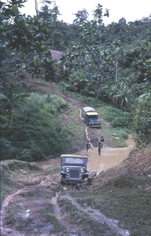 My Jeep and a Government Toyota "planted" whilst on a job in the Maprik area, East Sepik.