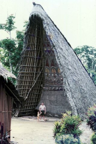 My father, Arthur Lock, with his grandson, Martin, atthe Maprik Haus Tamberan - 1972
