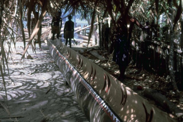 A new canoe just about to be launched on the Sepik river, Pagui.