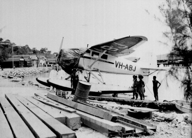 VH-ABJ - a float plane on the "beach" in Port Moresby harbour - 1937