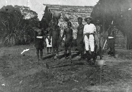 Note her pistol and the Schneider rifle in left hand; and two Buka boys wearing Upi hats