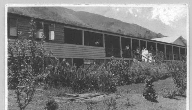 One of two hotels in Wau. Note Mt Kaindi in the background