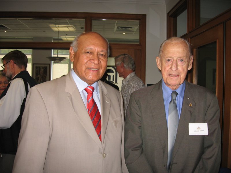 PNG high commissioner Charles Lepani and former kiap Ron Orwin reminiscing about the Trobriand Islands where Ron was stationed in the early 1960s