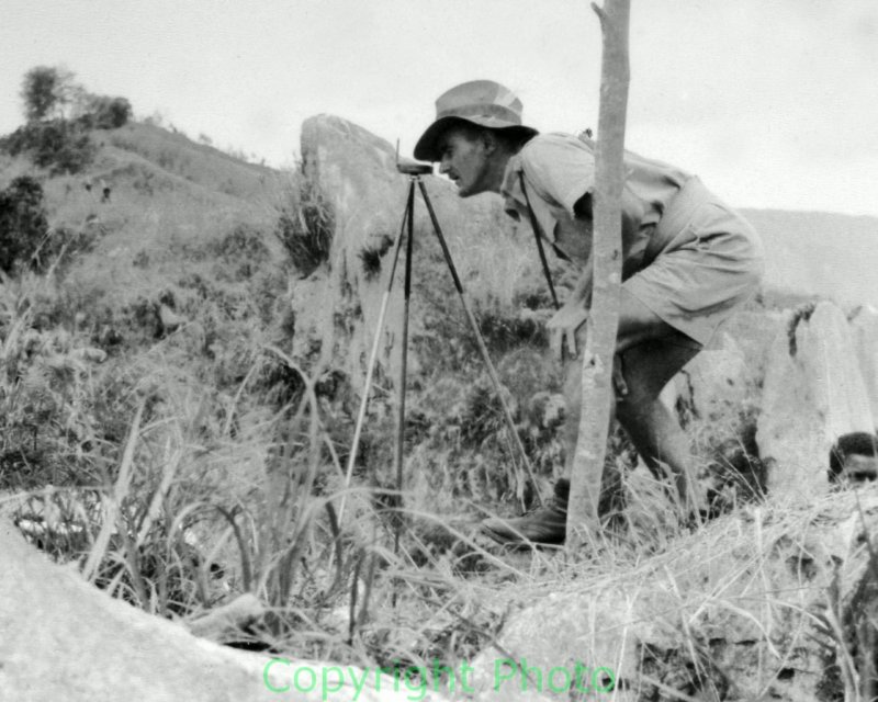 Cadet Patrol Officer Ian Skinner surveying in the Chimbu area circa 1938/39. Photograph: Ian Skinner. Courtesy The Skinner Family
