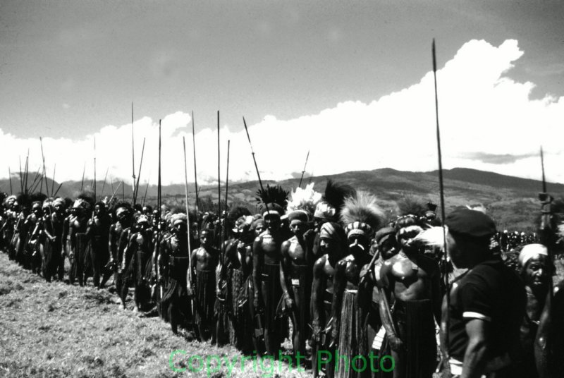 Jiga sing-sing, on the aerodrome, Mount Hagen, circa 1958. Photograph: Ian Skinner. Courtesy The Skinner Family